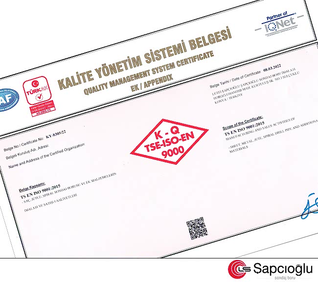 ISO 9001 Sertifikası Ekli
